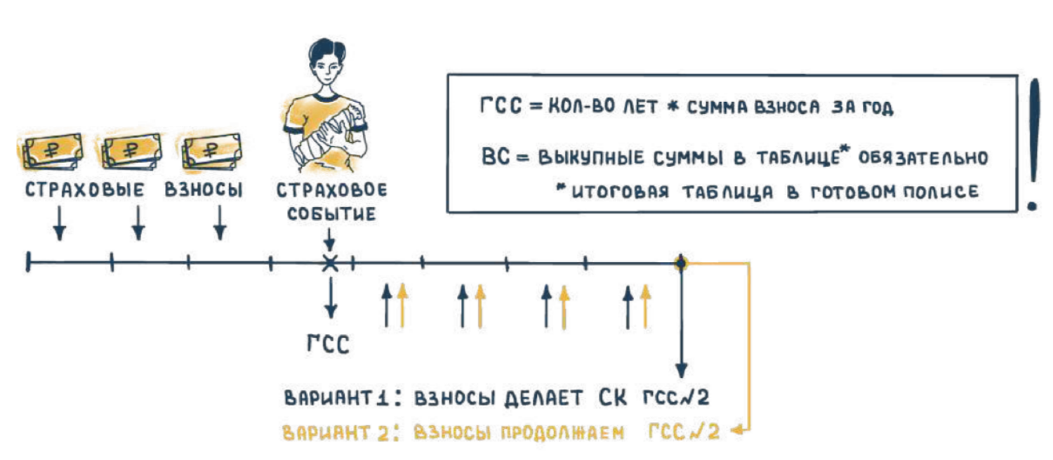 Выкупная сумма – сумма, которую страхователь получает в случае досрочного расторжения договора страхования. Она может быть равна нулю при определённых условиях.