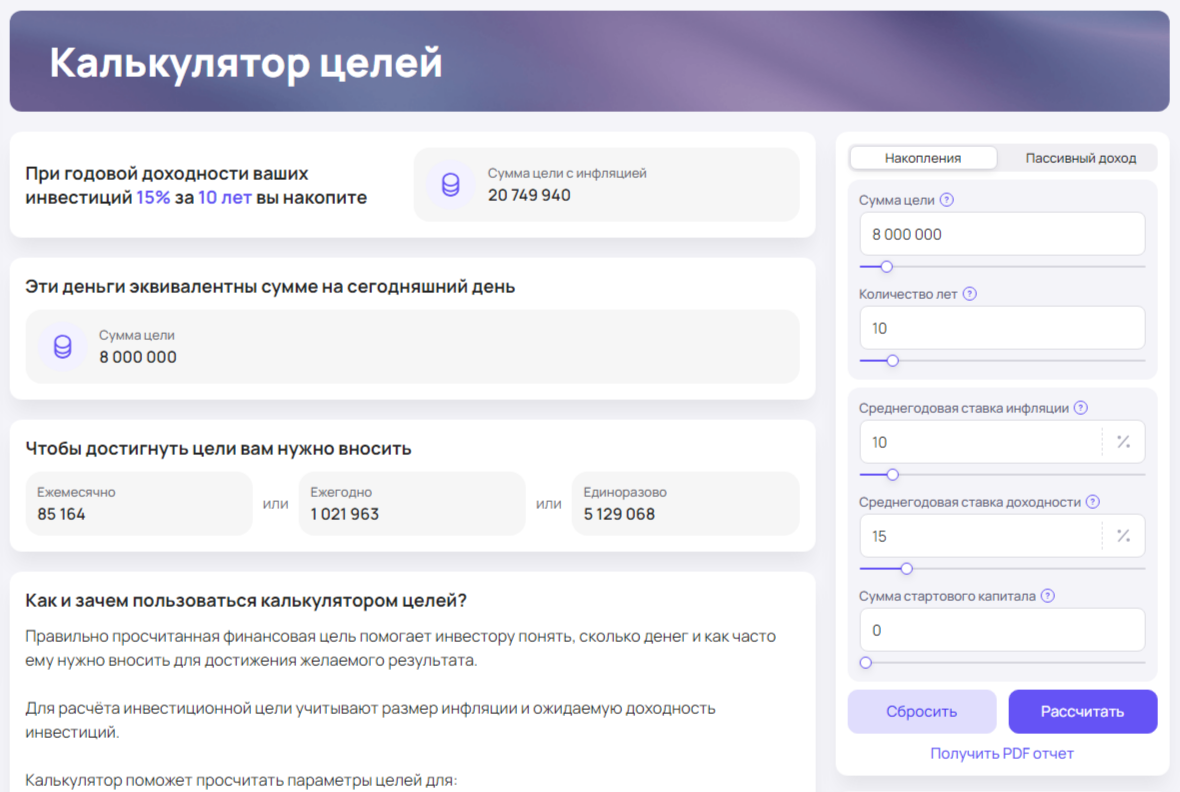 Сколько лет до достижения цели: 10 лет