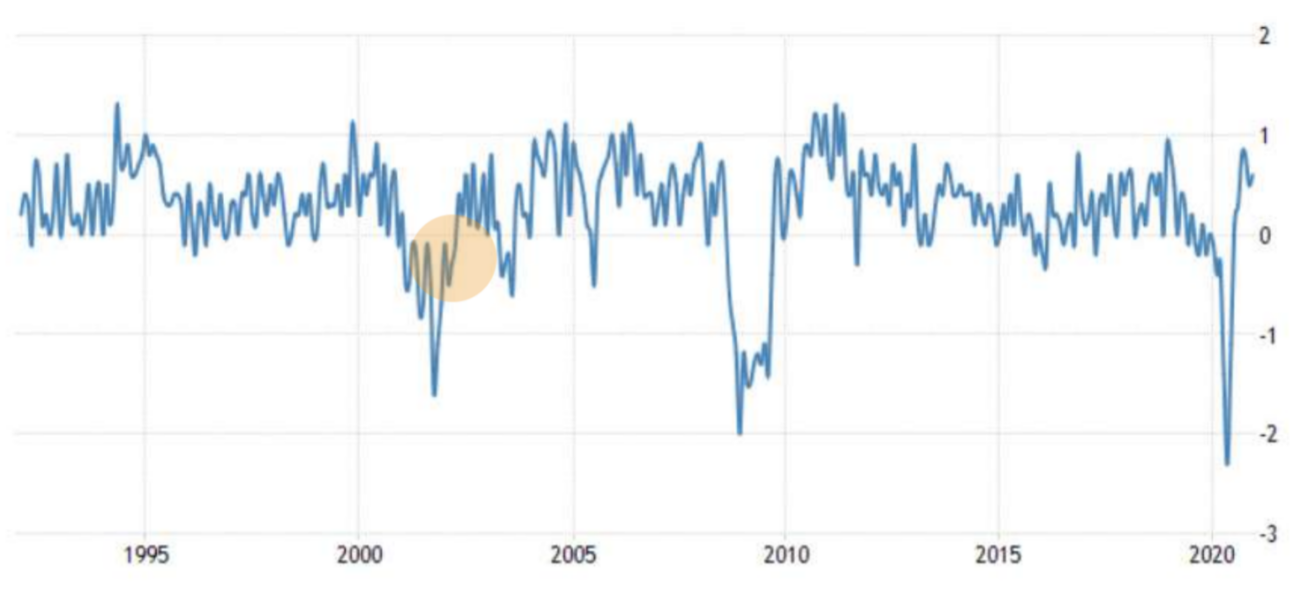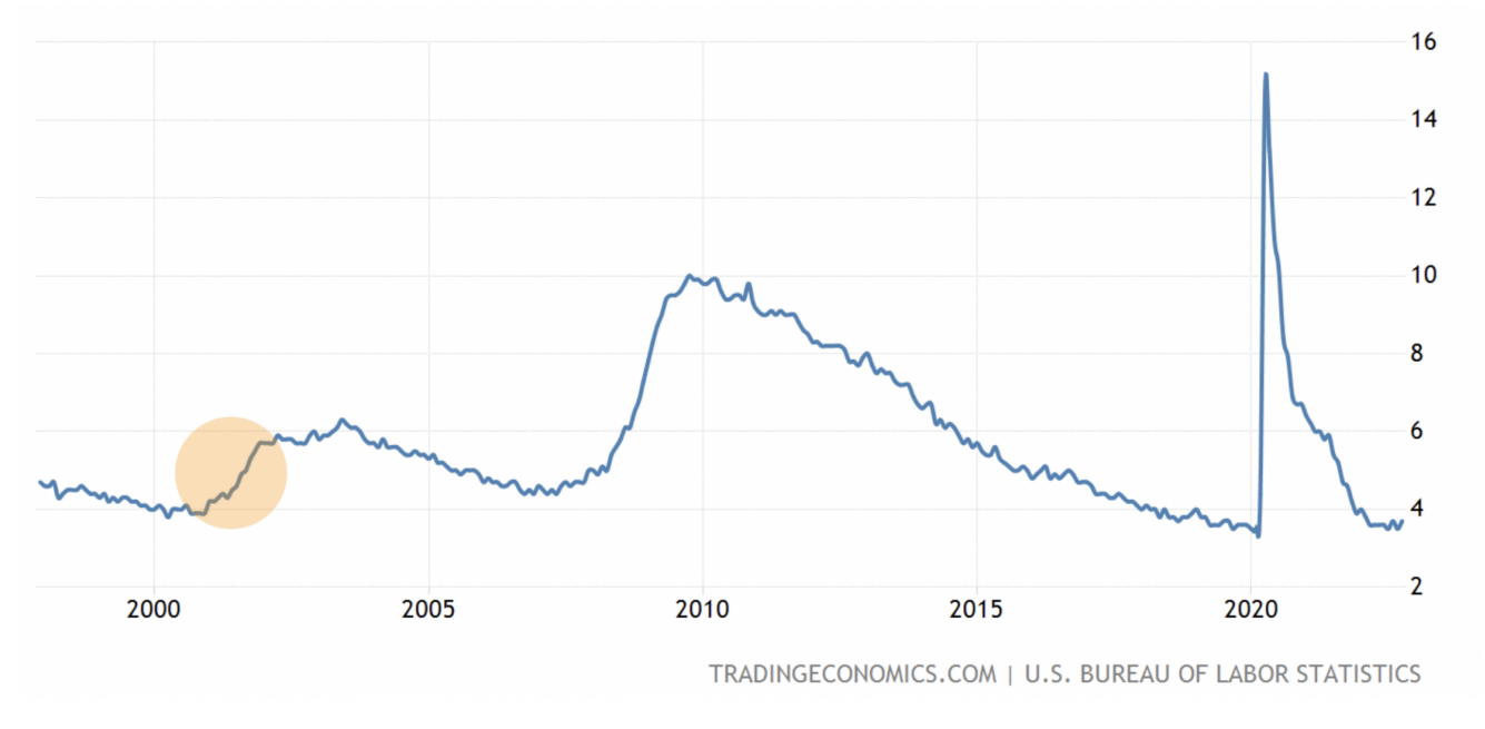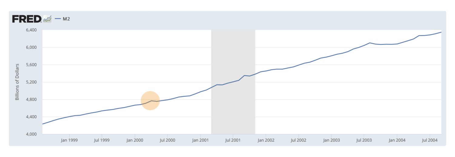 Если анализировать последующие два года (2001 и 2002), то складывается следующая картина: именно в 2001 и 2002 г.г. началась рецессия, однако, 2000 год соответствовал переходу от фазы роста к фазе замедления.