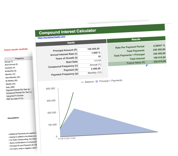 Таблица для моделирования долгосрочного планирования с учетом сложного процента